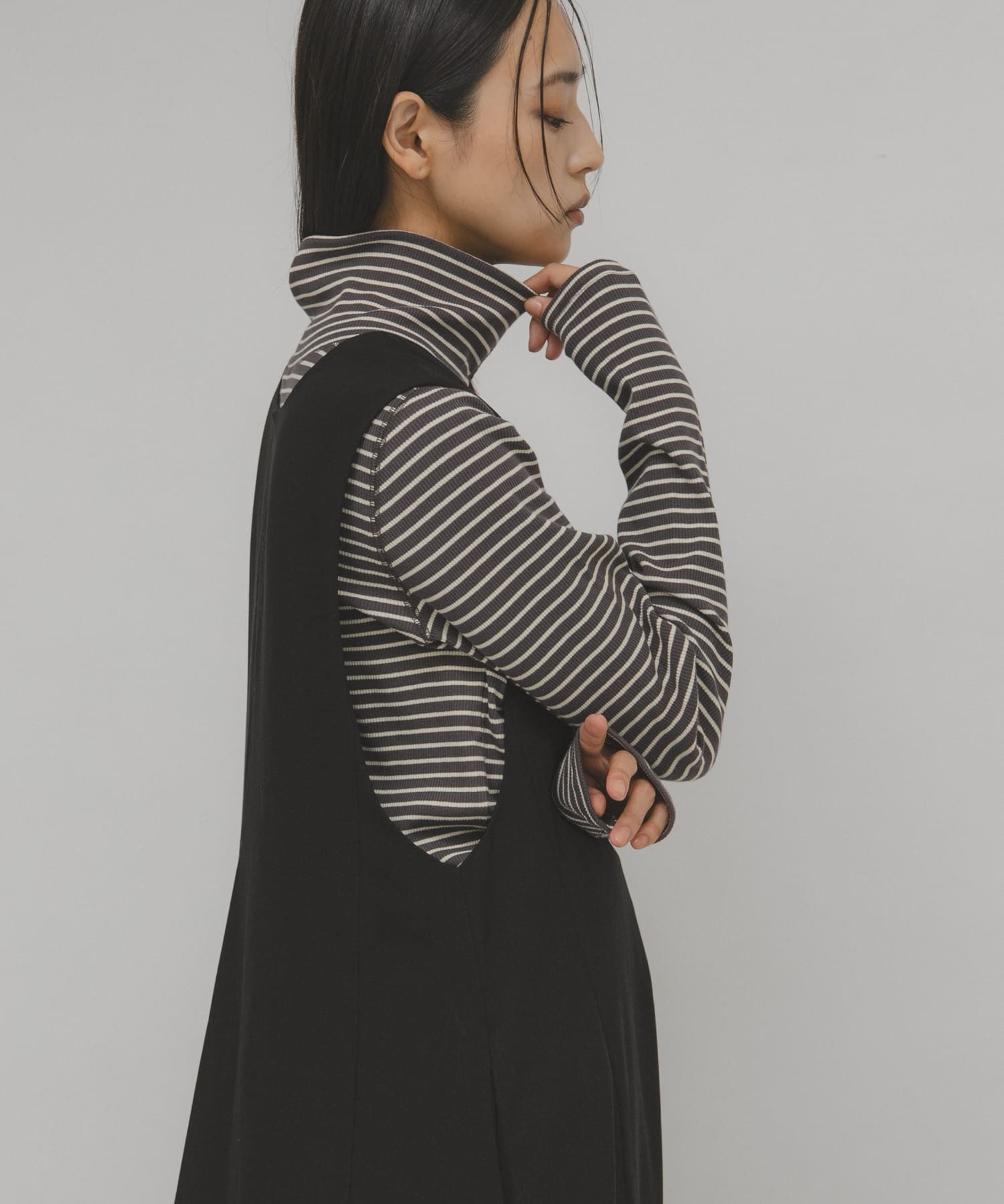『25FW日本代購』KBF 釦子高領條紋上衣