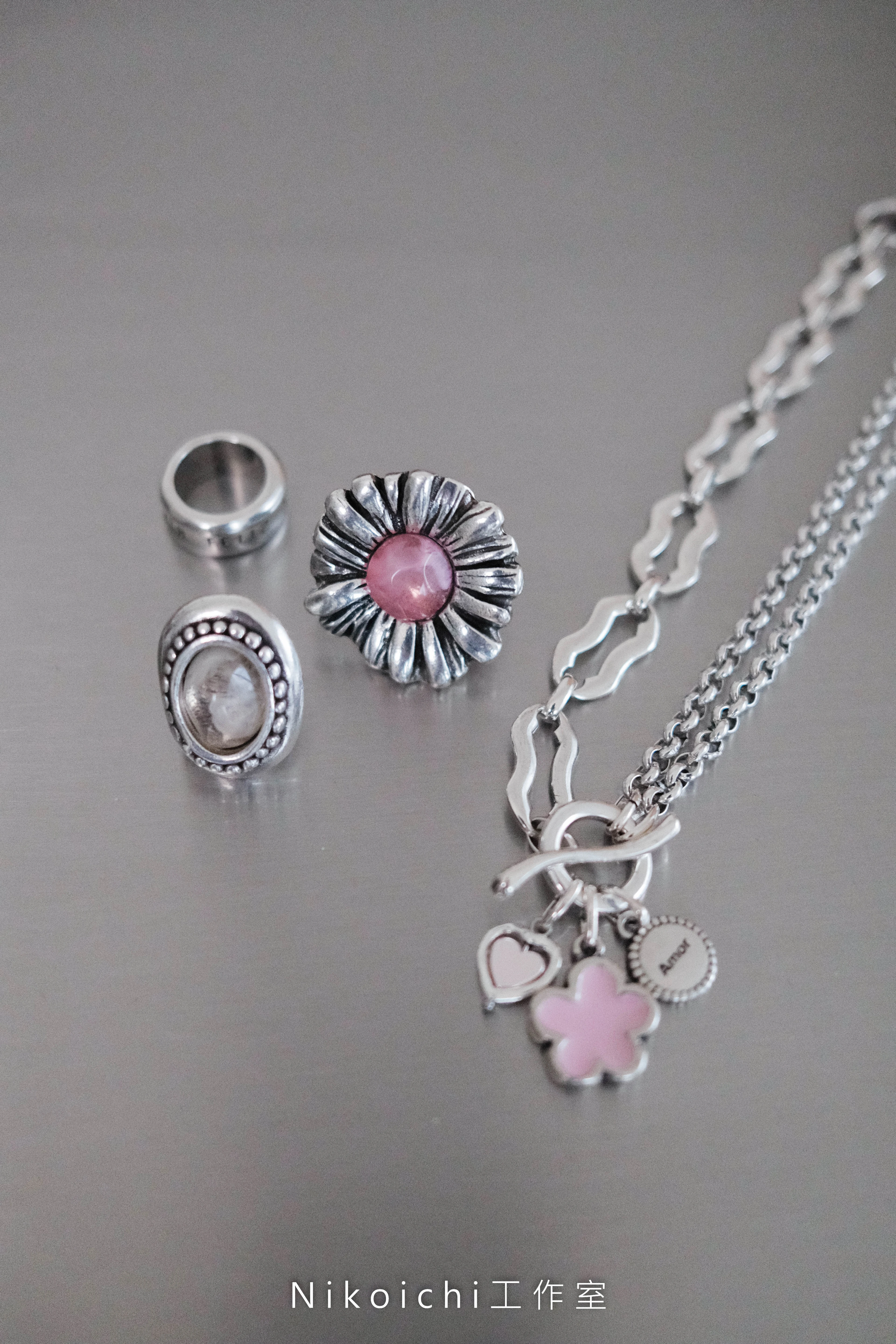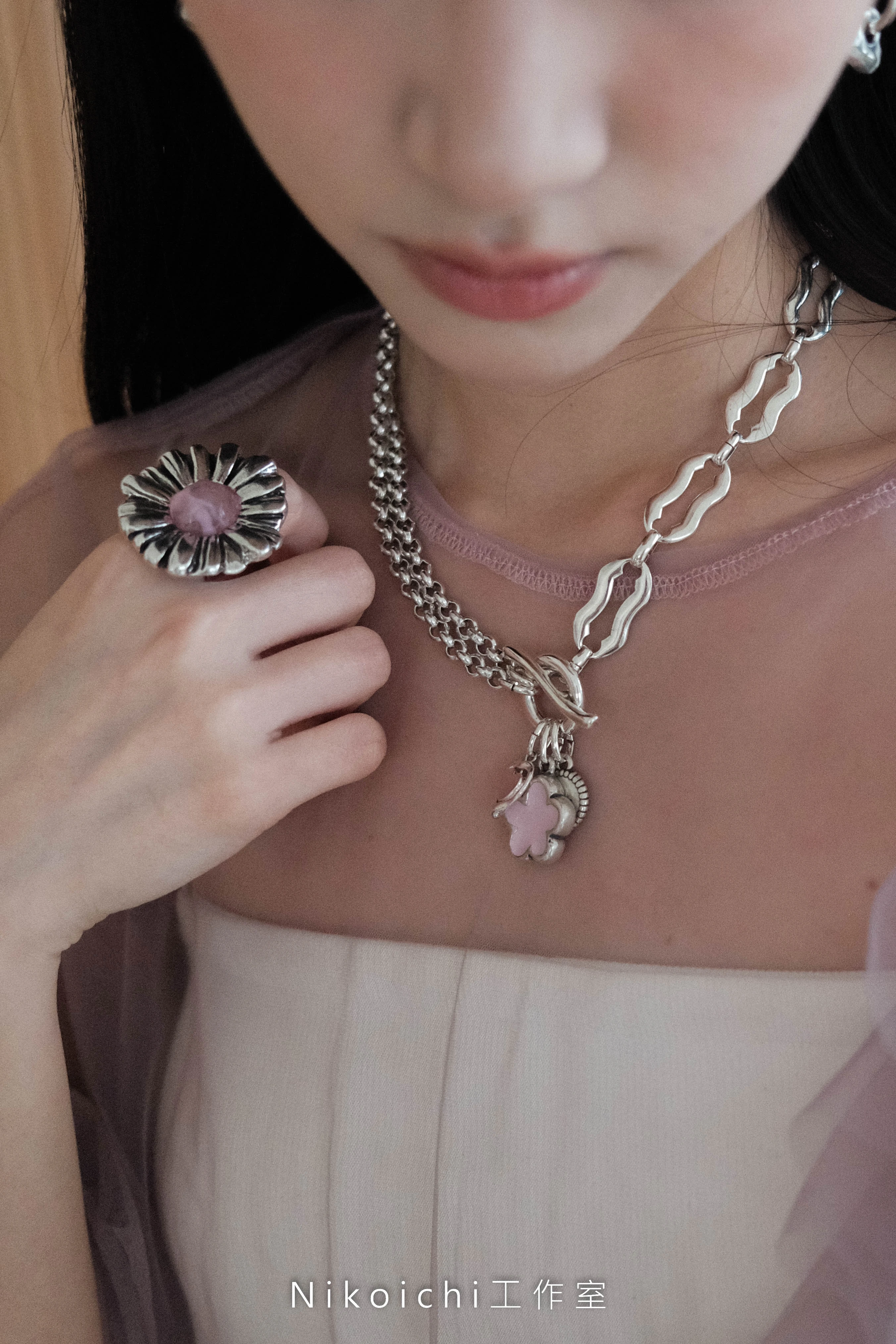【Otro Accesorio】小花拼接一字釦項鍊